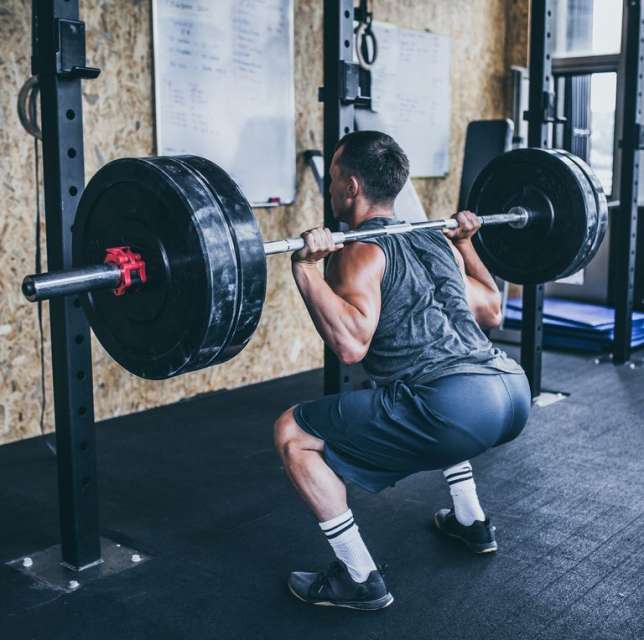 Start on your hands and knees, engaging your core. Keep your gaze down at the ground and flex your right foot. Keeping the knee bent, engage your glutes to lift your foot, pressing your heel to the sky. Lower back to the starting position with control and repeat.Pause Squat15 to 20 repsBegin by standing tall with your feet shoulder width apart. Bend your knees, sitting your hips back with your chest upright. Pause for five counts, squeezing your glutes at the bottom of the movement. Return to standing and repeat."So much musculature is involved during [squats]," says Bones. "Squats target quads and glutes, and when performed eccentrically (the lowering part of the exercise) glute activation is firing away."
