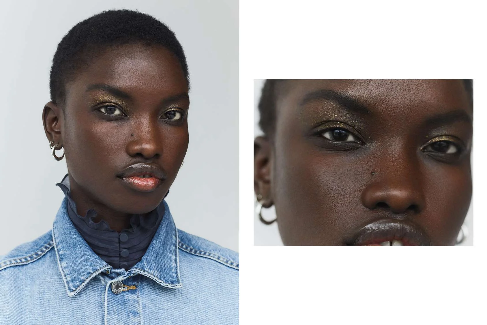 With this much glitter, you’ll want a natural, but flawless base. Use a light foundation if you want a bit of coverage, or to even out the skin tone. Or settle for a concealer wherever you feel the need.