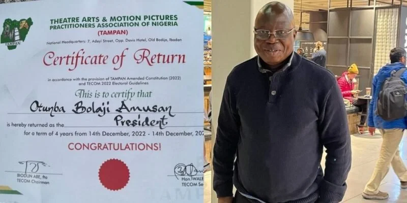 Legendary Actor, Bolaji Amusan, popularly known as “Mr Latin” has returned unopposed as National President of the Theatre Arts and Motion Pictures Practitioners Association of Nigeria (TAMPAN).