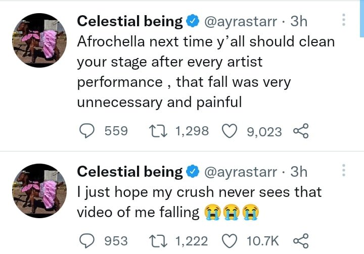 In response to the incident, Ayra Starr took to Twitter in a deleted tweet to warn the show's organizers.