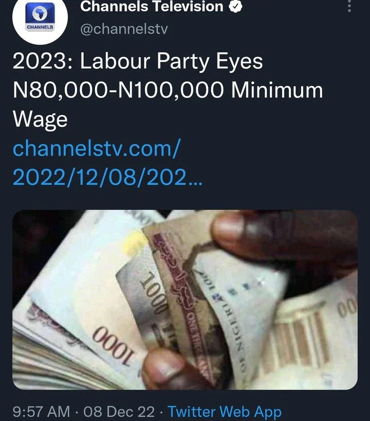 The Labour Party has said that if its presidential candidate wins the 2023 election, the country’s minimum wage can be as high as N80,000 to N100,000.