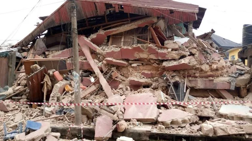After heavy rain on Saturday night, part of a three-story building at Ahiaeke Ndume Ibeku in Umuahia North Local Government Area of Abia State fell.