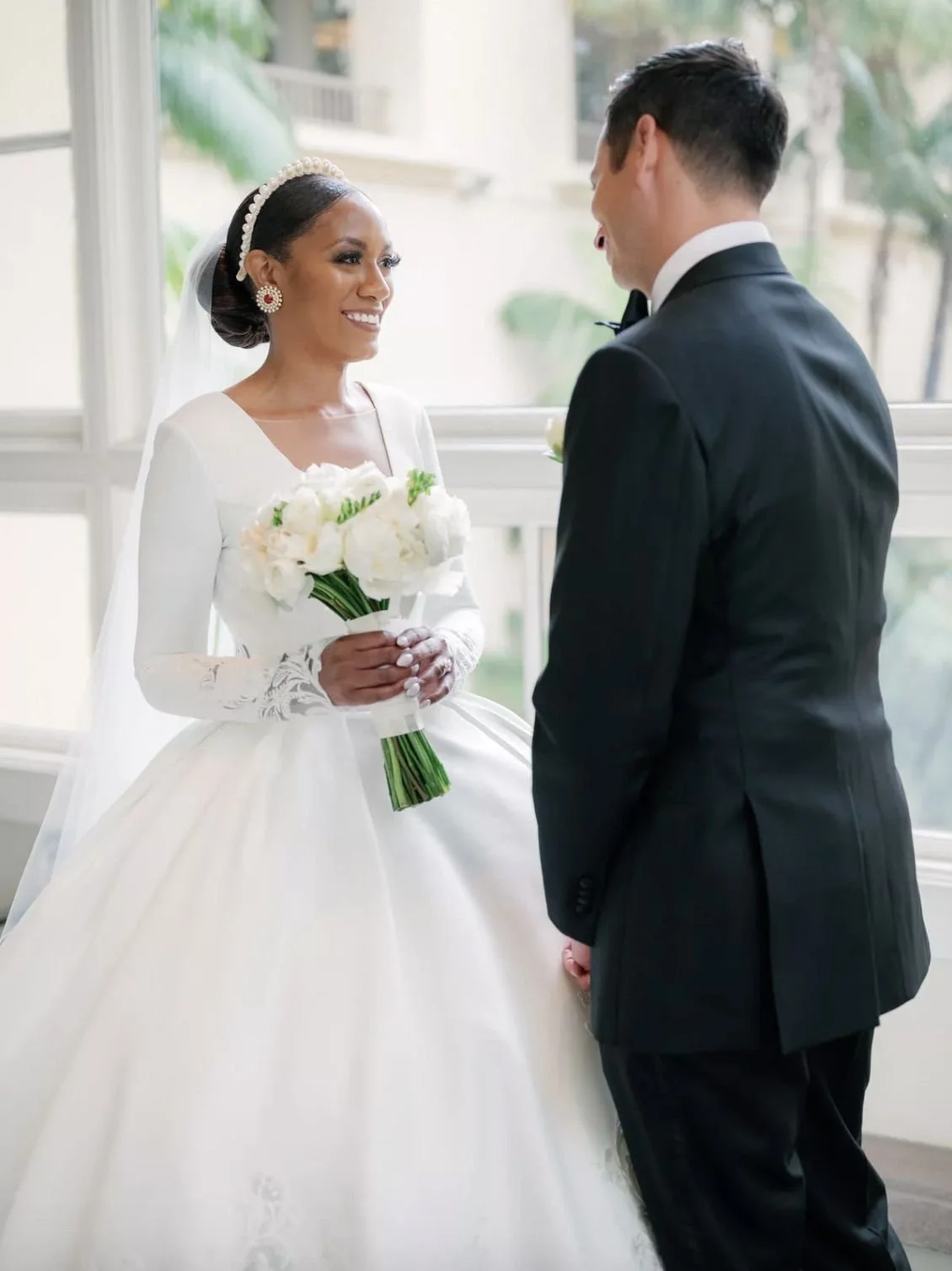 When it comes to her personal style, Bingham also rejects formalwear norms. On her Instagram, where the California native goes by @gowneyedgirl, Bingham can be seen wearing easy-to-wear pieces like mini skirts, athleisure bralettes, ‘70s-inspired vests, and straight-leg jeans. But that’s not to say she doesn’t enjoy wearing the multiple wedding dresses she tries on whenever she partners with brands like Sophie et Voilà and Houghton by Katharine Polk.