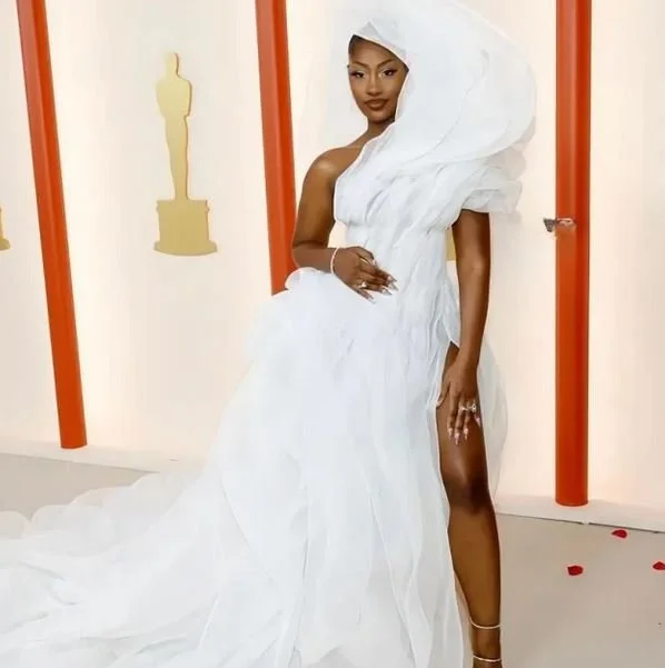 Superstar Nigerian singer/songwriter, Temilade Openiyi aka Tems looked beautiful in a white dress at the 2023 Oscars which took place at the Dolby Theatre, Ovation Hollywood in Los Angeles, US, last night.