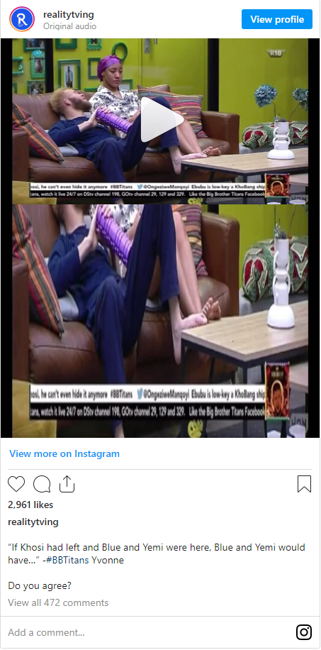Ebubu nodded, adding that Yemi made everything between him and Khosi appear forced.