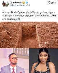Nollywood actress Doris Ogala has intensified her dispute with Pastor Chris Okafor, founder of the Mountain of Liberation and Miracle Ministry, by urging Nigeria’s Department of State Services (DSS) to investigate the church altar.