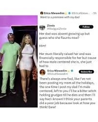 However, this innocent post triggered mixed reactions online. One X user accused Erica of being "male-centered," implying that despite her father’s absence in her upbringing, she now flaunts him publicly, while it was her mother who took full responsibility for raising her.