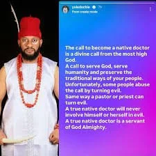 In his post, Edochie emphasized that a true native doctor, like a pastor or priest, should serve with good intentions, avoiding any involvement in evil deeds. He wrote: