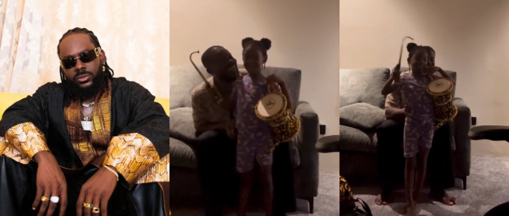 Adekunle Gold Melts Hearts With Adorable Video of Daughter Deja Playing Talking Drum